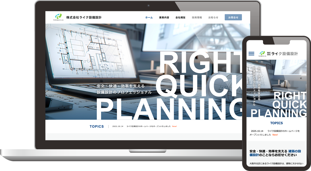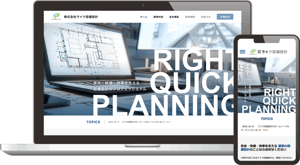 この度、株式会社ライク設備設計のホームページを公開いたしました。